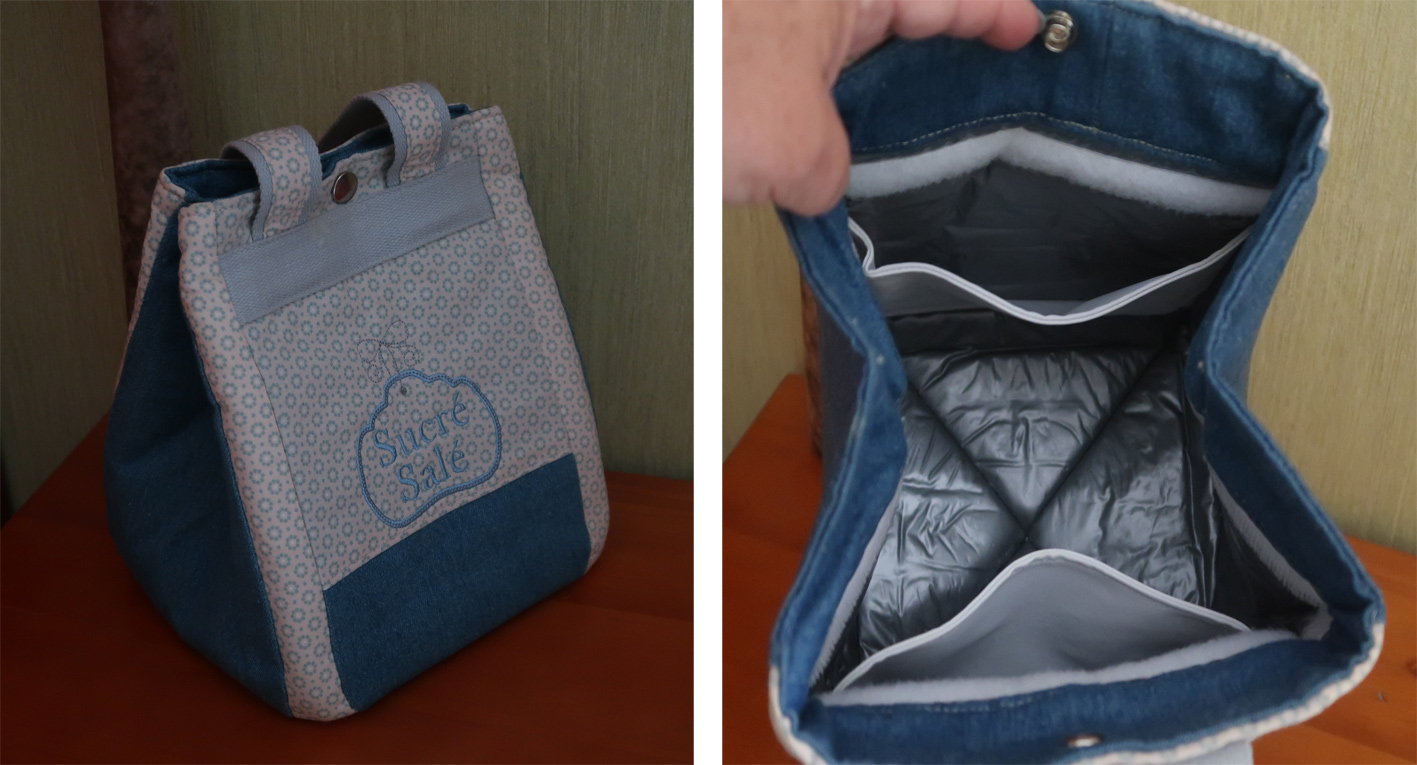 Intérieur isotherme, 2 poches, fermeture scratch + pression, dimensions = 20 x 20 x 25 cm