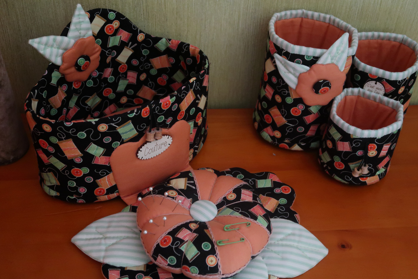 ENSEMBLE POUBELLE A FILS / PIQUE-EPINGLES + PORTE-CRAYONS